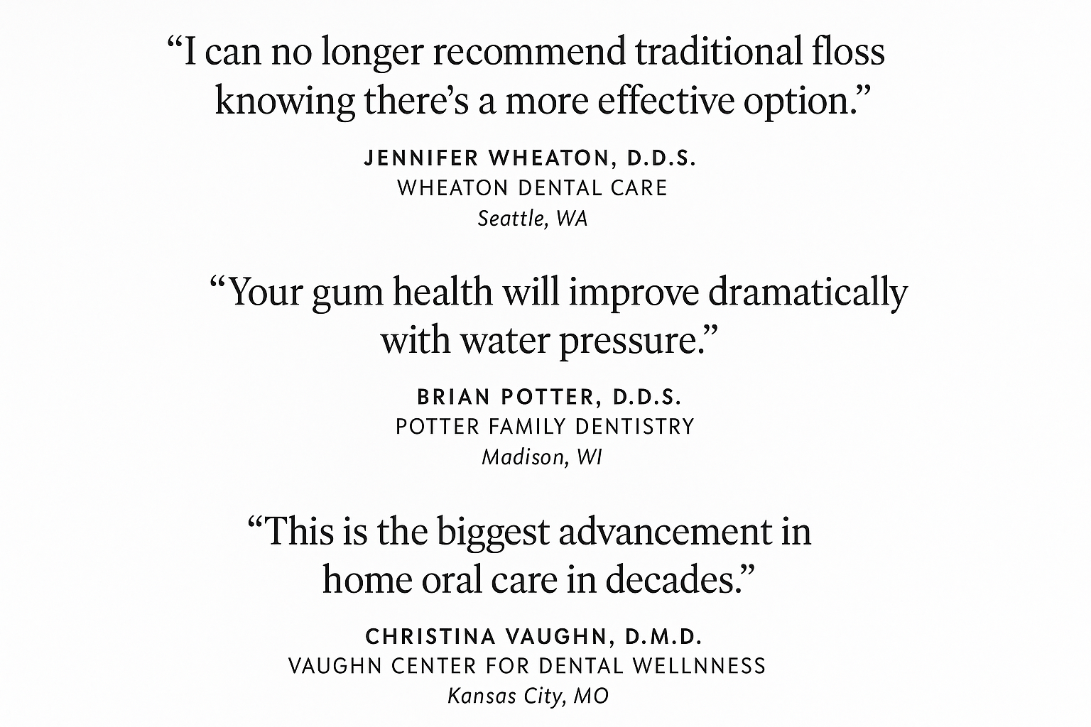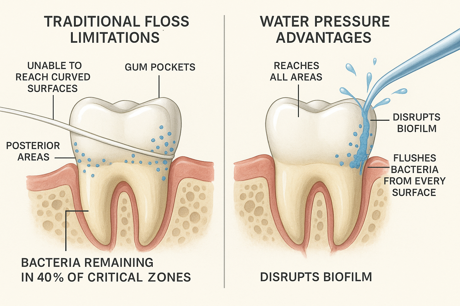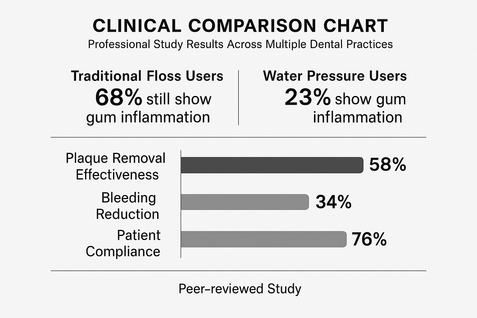 "Clinical evidence," she replied. "I've been tracking patient outcomes for two years, and the data is undeniable. Patients using water pressure flossing consistently achieve better results than those using traditional floss, even when the traditional floss patients have perfect technique."